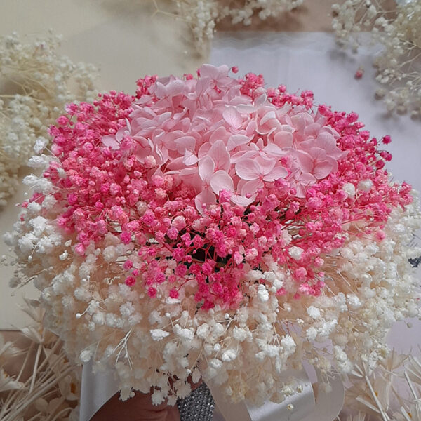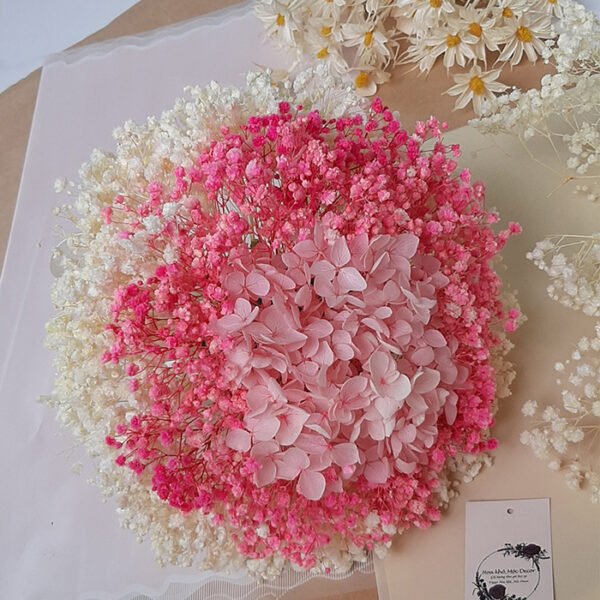 Hoa cưới cô dâu là hoa khô được làm tư chất liệu hoa tươi đã được sấy khô theo công nghệ hiện đại.